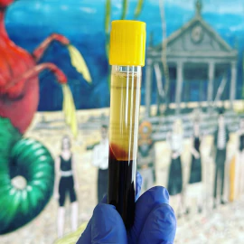 Nurse Sophie will take a blood sample from you-exactly the same process as when you have a blood test. She will then put it into the centrifuge to be spun so that the plasma is separated from the red blood cells.